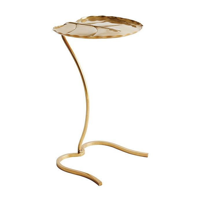 Make a bold style statement with this uniquely crafted accent table featuring a leaf-inspired tray top in a luxurious gold finish. The organically curved stem and asymmetrical base create a sculptural, modern look that blends art with functionality. Perfect for serving, displaying décor, or adding a decorative touch, this table enhances contemporary and luxury interiors with its elegant and eye-catching design.