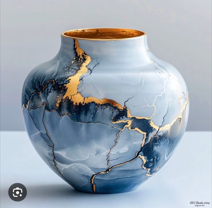 Make a bold statement with this exquisite ceramic vase featuring a stunning marble-inspired design. Blending deep oceanic blues with soft grey tones, the surface is beautifully accented by striking gold vein patterns that mimic natural stone formations, creating a luxurious and artistic finish.