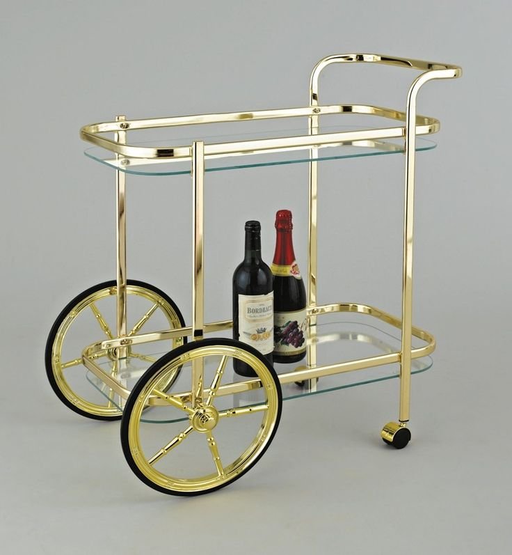 Luxury Gold Vintage Wheel Bar Trolley with Glass Shelves