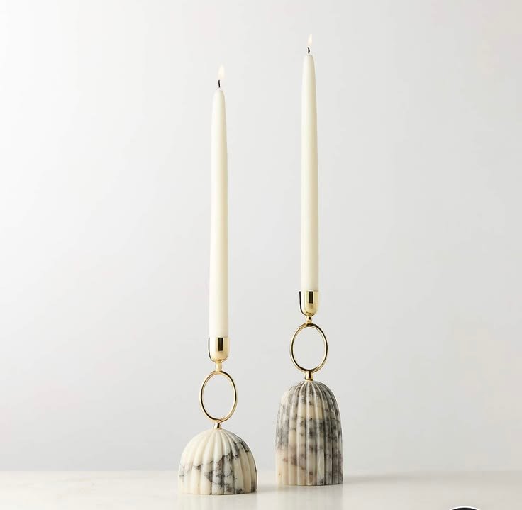 Elegant candle holder set featuring natural marble bases with gold accents and ring detailing. Designed for taper candles, perfect for adding a refined, modern, and luxurious touch to home décor.