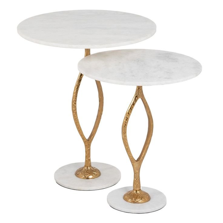 Elegant nesting side tables featuring smooth white marble tops paired with artistic gold-finish bases. Perfect for adding a sophisticated, modern, and luxurious touch to living rooms or bedroom décor.