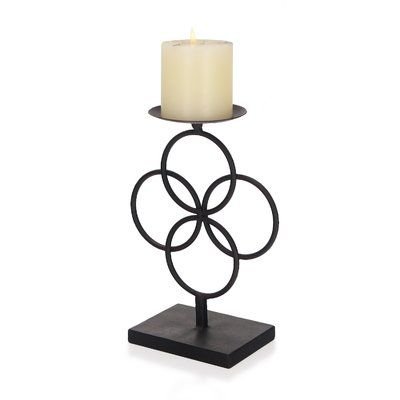 Stylish candle holder featuring an artistic interlocking ring design in a matte black finish. Perfect for pillar candles, adding a contemporary and elegant touch to home décor, tables, or living spaces.