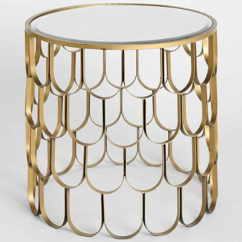 Modern Gold Scalloped Metal Accent Table with Glass Top