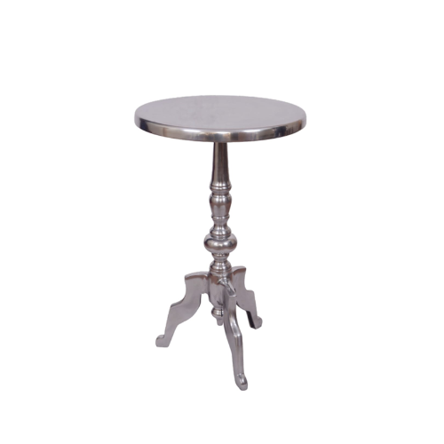 Enhance your space with this elegant silver side table featuring a sleek round top and a beautifully crafted pedestal base. Designed with a polished metallic finish, it adds a touch of sophistication to any living room, bedroom, or lounge area. Perfect for displaying decor, holding beverages, or complementing modern and classic interiors.