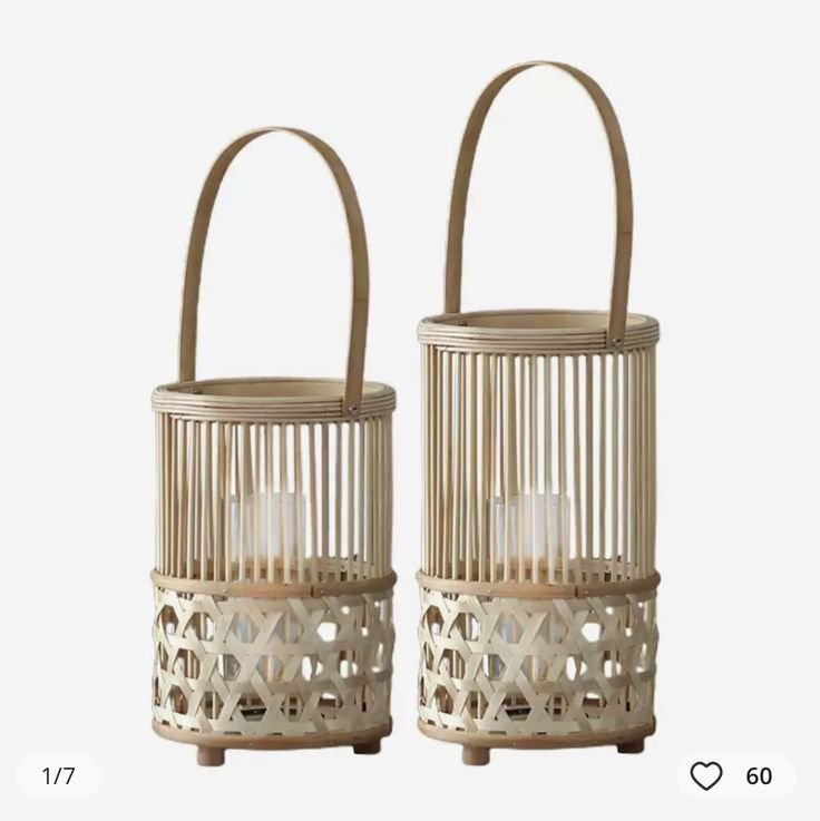 Introduce a light, airy feel to your décor with this beautifully crafted bamboo lantern set. Designed with a blend of vertical slats and an intricately woven base, these lanterns showcase natural craftsmanship while allowing candlelight to softly filter through for a warm, calming glow.