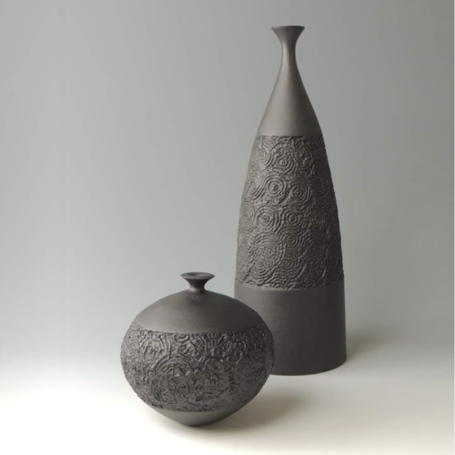 Textured Matte Black Ceramic Vase Set (2-Piece)