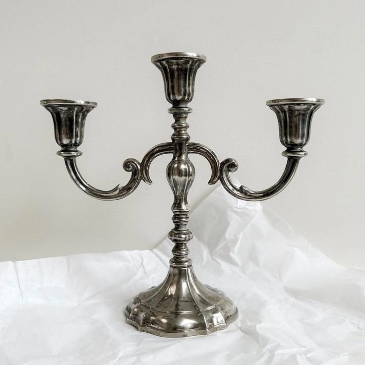 Elegant vintage-style candelabra crafted in a polished silver finish with three gracefully curved arms. Perfect for candles, it adds a classic, timeless charm to dining tables, events, and home décor settings.